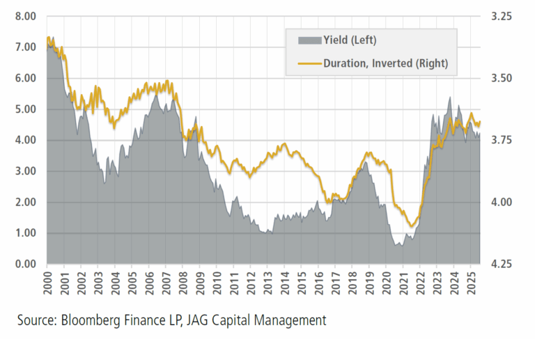 JAG has maintained a constructive bond market outlook for several years, enduring bouts of volatility, tight credit spreads, and a prolonged yield curve inversion. Despite evolving risks, we consistently reach the same conclusion: absolute yields remain attractive.